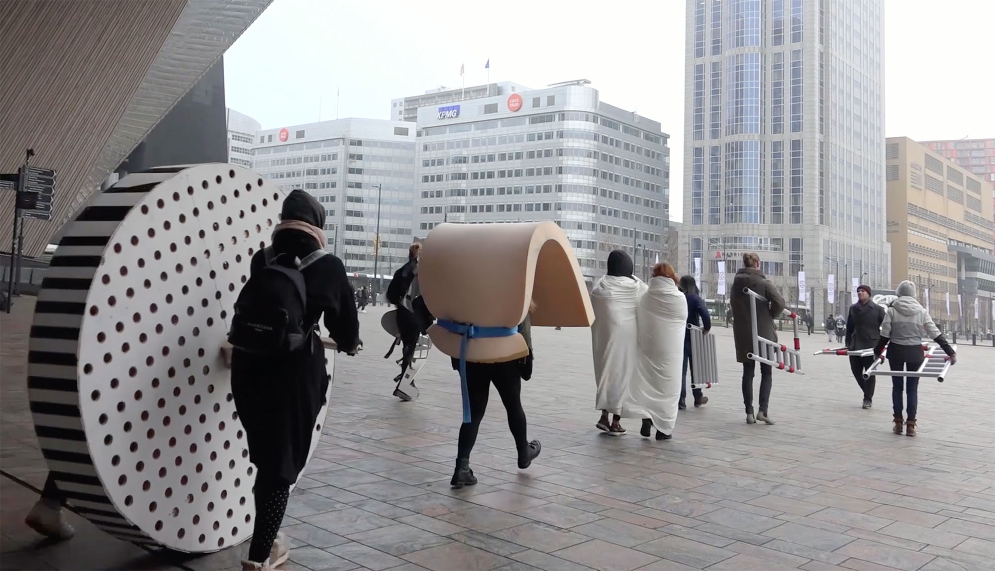 The curriculum at the Royal Academy of Art (KABK) in the Hague is in many aspects inspired by the Bauhaus. In the run-up to the exhibition The Netherlands < > Bauhaus – Pioneers of a New World at the Museum Boijmans Van Beuningen, students of the Interior Architecture & Furniture Design department received the assignment to create an interactive, stand-alone installation and a parade in line with the subtitle of the exhibition ‘pioneers of a new world’.